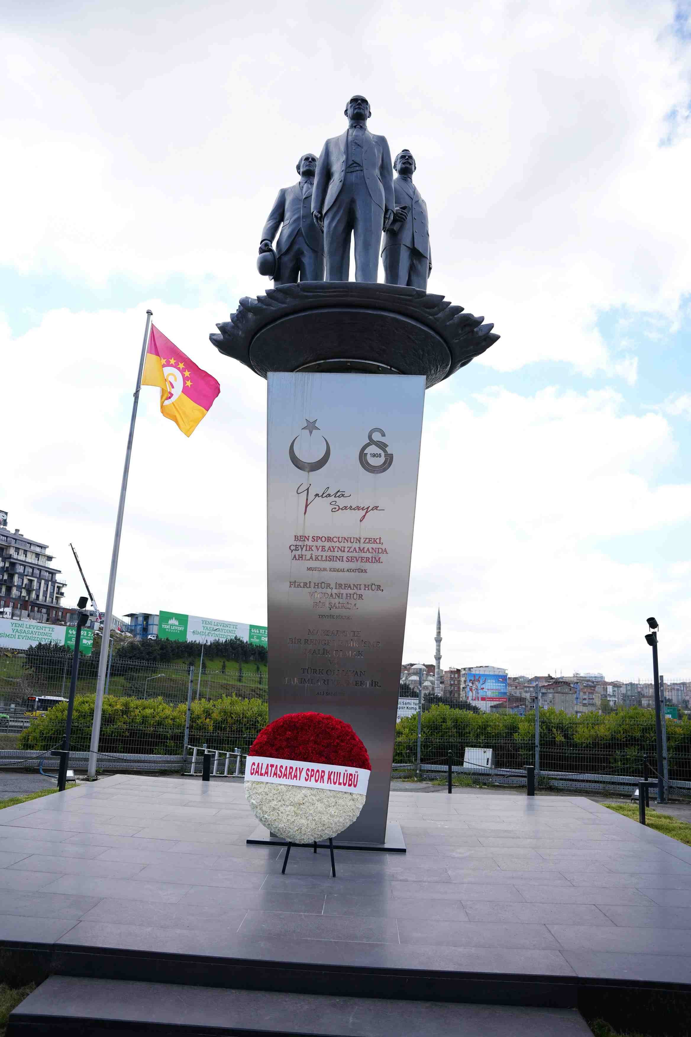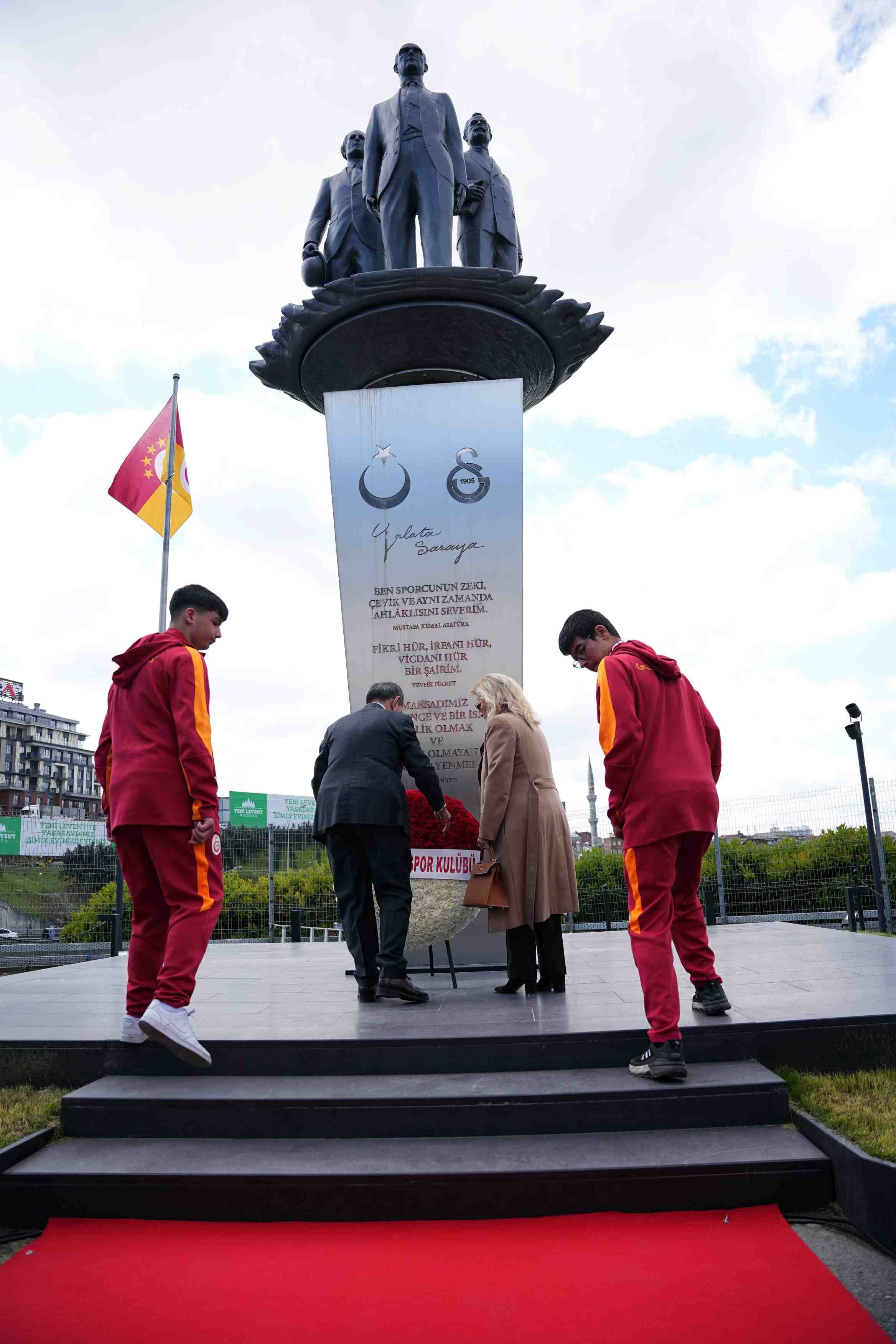 Tören öncesinde Dursun Özbek ve eşi Mesude Özbek ile birlikte Gazi Mustafa Kemal Atatürk, Tevfik Fikret ve Ali Sami Yen Anıtı'na çelenk bıraktı.