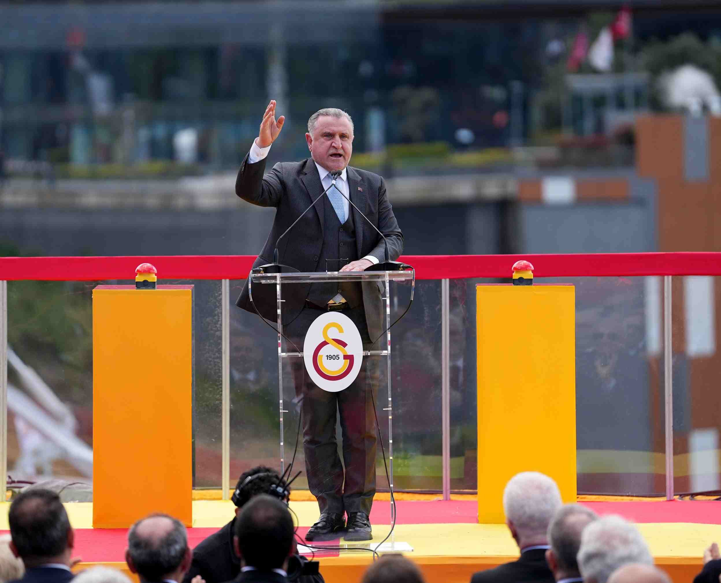 Sporun ortak bir düşünce, dil olduğunu söyleyen Bakan Bak, "Galatasaray'ı şöyle hatırlıyoruz; kurucularının da ifade ettiği gibi, 'Türk olmayanları yenen takım'. Ben inanıyorum ki Galatasaray burada amatör branşlara verdikleri büyük destekle çok daha büyük başarılar elde edecek. Avrupa, dünya, olimpiyat şampiyonları burada yetişecek ve Galatasaray forması altında yetişmeye devam edecekler. Türk Milli Takımı'na, Türk sporuna hizmet edecekler. Önceki başkanlarla hepsiyle mesaimiz oldu, hepsinin Galatasaray'a katkıları tesisleşme açısından oldu ama bu süreçte yine bir aradalar, bu birlik beraberlik çok önemli. Ben Türk sporu için böylesine önemli bir günde sizlerle bir arada olduğum için çok mutluyum. İnşallah bu güzel tesis çok kısa sürede başkanla biraz evvel konuştuk, 3 yıl içinde tamamlanacak. Yaklaşık 200 milyon Dolarlık bir yatırım. Türk sporu için önemli bir yatırım. Hep beraber bu tesisin tamamlanması için çalışacağız. Bu ülkenin şampiyon takımları bitmez, bu ülkenin gençleri dünyaya Türkiye’nin ne kadar güçlü olduğunu göstermeye devam edecek. Büyük Galatasaray için, şampiyon Cimbom için, Türkiye Milli Takımı için hep beraber çalışmaya devam edeceğiz. Milli Takımımıza Dünya Kupası'nda başarılar diliyorum. Her şey Türkiye için" diyerek sözlerini tamamladı.