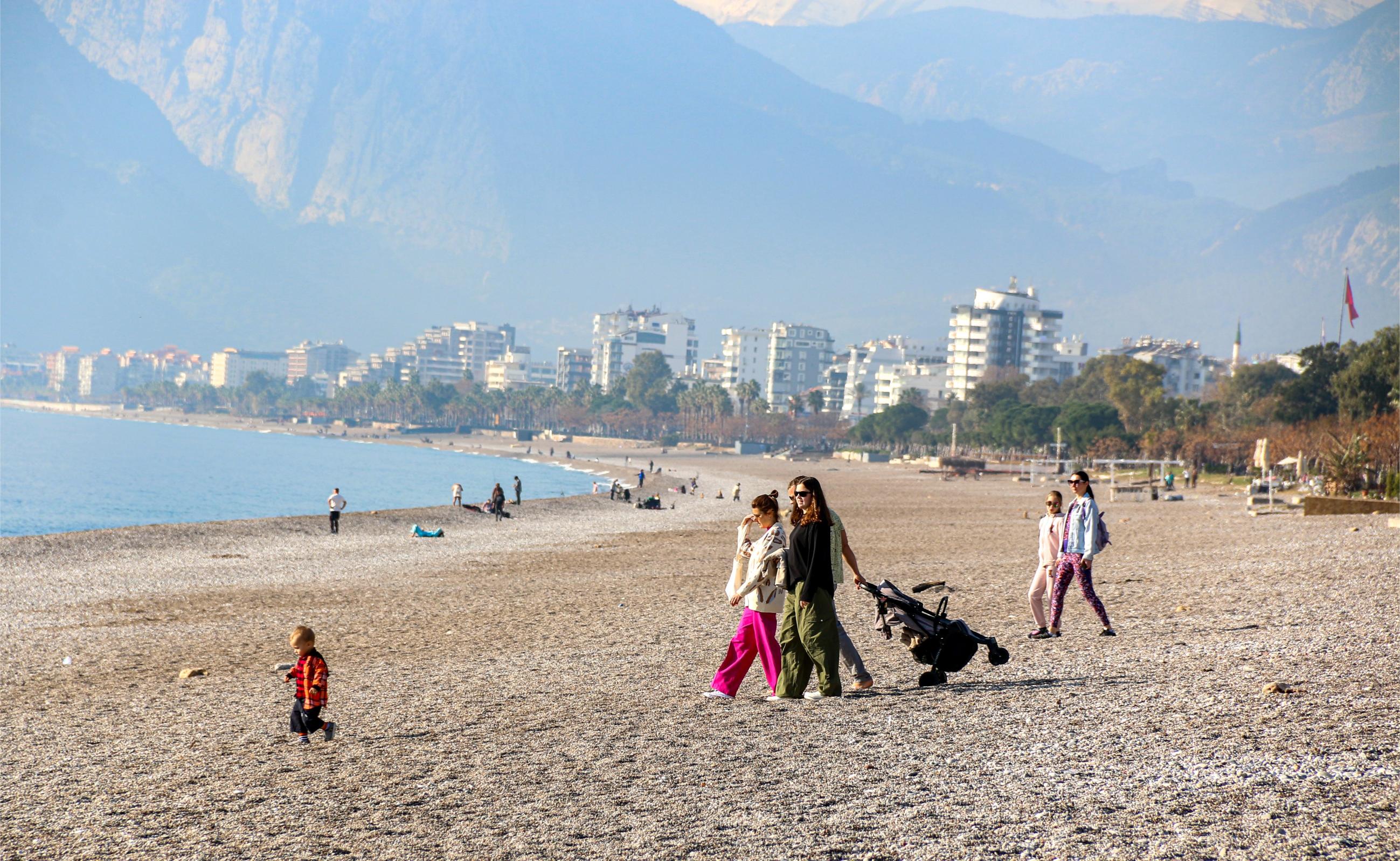 Turizmin başkenti Antalya, yeni yılda hava şartlarıyla geleneği bozmadı. Hava sıcaklığının 19 derece ölçüldüğü kentte, nem oranı yüzde 74’e kadar ulaştı. Zamanını dışarıda geçirmek isteyen vatandaşlar ise havanın parçalı bulutlu olmasına rağmen sahile geldi. Kent sakini ve turistler, sıcaklığı 19 derece ölçülen kentte denize girdi, bazıları ise balık tuttu. Tatilciler dünyaca ünlü Konyaaltı sahilinin sıcak kumsalına uzanarak güneşlenmenin keyfini surdu.