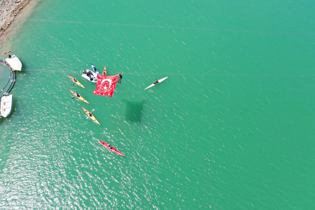 Yeşil baraj gölü üzerindeki rengarenk kanolarla yapılan gösteri drone ile havadan da görüntülenerek seyrine doyumsuz görüntüler ortaya çıktı.