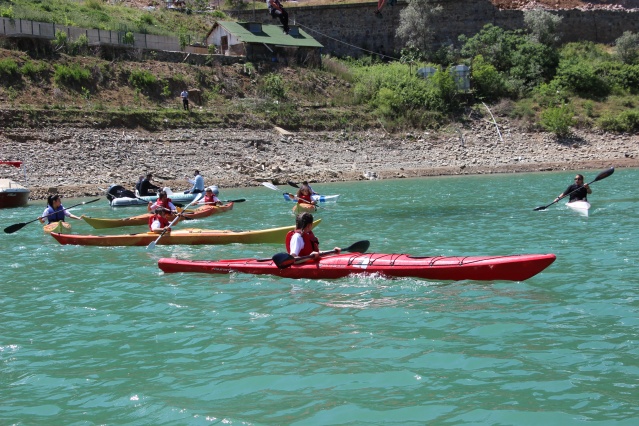 Artvin’de durgun su kano sporunu geliştirmek için başlatılan proje kapsamında Gençlik ve Spor İl Müdürlüğü ve AÇÜ Beden Eğitimi ve Spor Yüksekokulu işbirliği ile kano sporcuları Borçka Baraj Gölünde küçük bir gösteri gerçekleştirdiler. Kano gösterisini Artvin Valisi Yılmaz Doruk ve Artvin Gençlik ve Spor İl Müdürü Mustafa Demirkıran tekne ile yakından takip ederek sporcuları tebrik etti.