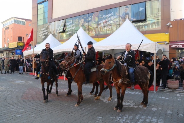 Artvin'in düşman işgalinden kurtuluşunun 101. yıl dönümü düzenlenen törenle kutlandı. Kurtuluşun temsili olarak canlandırıldığı törende, tabancalarla kuru sıkı mermiler yer aldı. At ve kağnı arabalarla o günler yaşatıldı