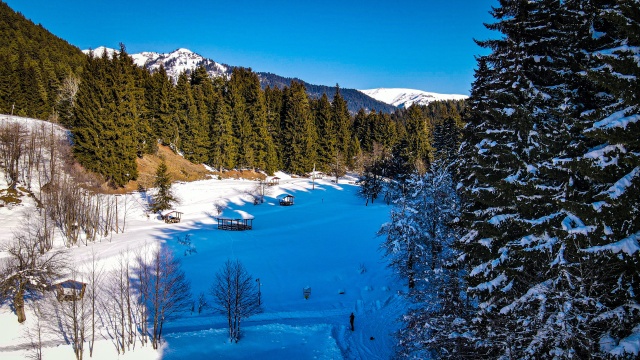 Karagöl’ün buz tutmuş halini görmek isteyenler günü birlik gidip, temiz havası ve muhteşem doğanın tadını çıkartıyor. Güvenlik amaçlı gölün üzerine çıkmak yasaklanırken, buz tutan Karagöl havadan görüntülendi.