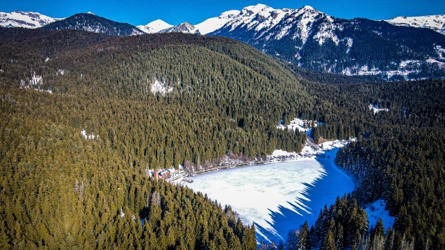 Gökyüzünden görüntüsü ile kalbi andıran Artvin'in Şavşat ilçesindeki Karagöl'ün yüzeyi tamamen buz tuttu