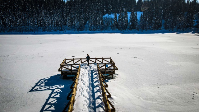 Artvin'in "Sakin Şehir" ünvanlı Şavşat ilçesinde doğal güzellikleriyle ünlü Karagöl beyaza büründü. Buz tutan gölün yüzeyi günü birlik ziyaretçilerin uğrak noktası haline geldi.