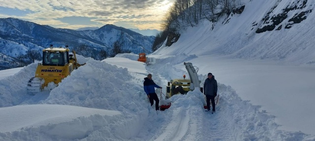 Türkiye'nin ilk ve tek biyosfer rezerv alanı Camili (Macahel) bölgesindeki 42 km'lik yol açık tutulmaya çalışılıyor. Kaymakam Ali Osman Bulat, kar kalınlığını 3 metreyi bulan bölgeyi ziyaret etti.