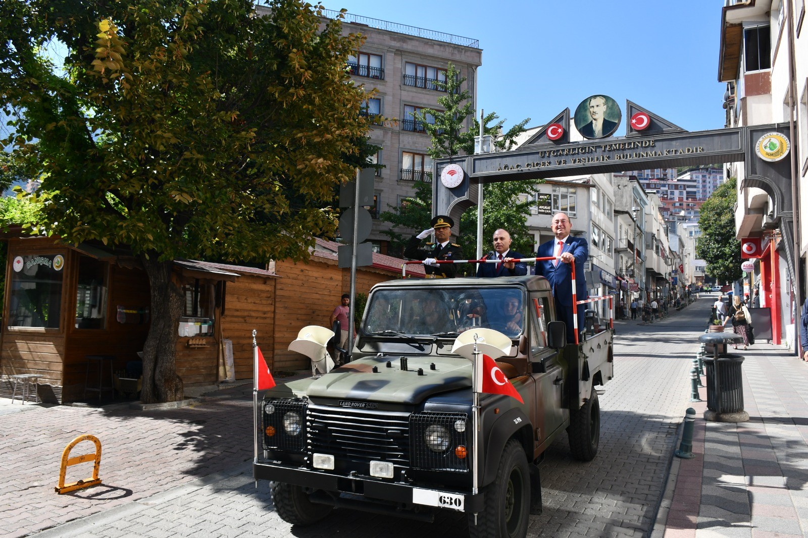 Valilik makamındaki tebrik programında sonra Vali Cengiz Ünsal, Garnizon Komutanı Piyade Albay Ali Osman Tokat, Belediye Başkanı Demirhan Elçin’in askeri araç üzerinde İnönü Caddesindeki vatandaşların bayramını kutlayarak valilik önüne geldi. Buradaki tören Saygı Duruşu ve İstiklal Marşı’nın okunmasıyla başladı. Piyade Teğmen Yasin Hamza Parlak tarafından günün anlam ve önemine ilişkin konuşmasının ardından tören Sosyal Bilimler Lisesi öğrencileri tarafından 30 Ağustos Zafer Bayramı konulu şiirler okunması ve Halk oyunları gösterisi ile devam etti.