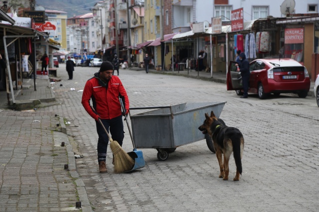 Artvin’in Kemalpaşa ilçesinde temizlik görevlisi ile köpeğin dostluğu görenleri kendine hayran bırakıyor. Temizlik görevlisinin yanından bir an olsun ayrılmayan 'Batum' isimli köpek, her gün mesai boyunca kendisine eşlik ediyor. Çöp toplayıp, el arabasını iten köpek, belediye başkanının makamına da temizlik görevlisiyle birlikte giriyor.