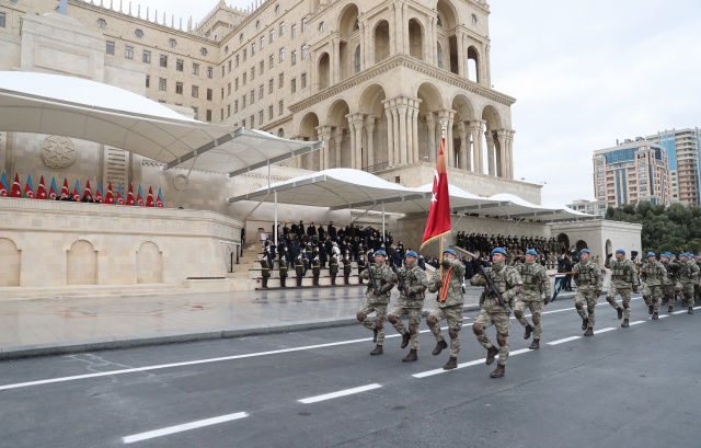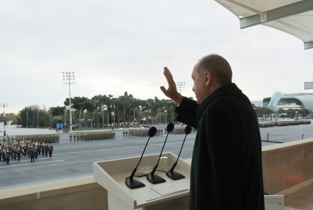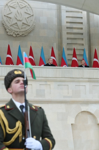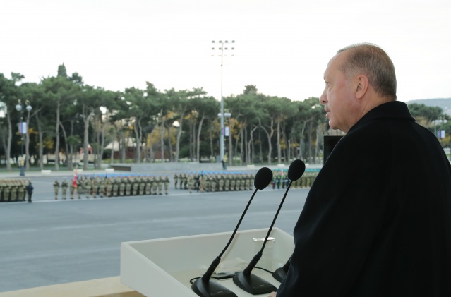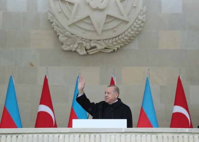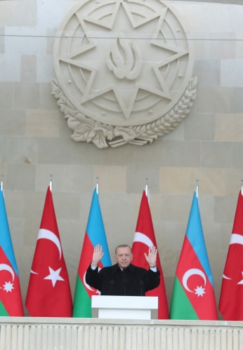 Azerbaycan'ın Ermenistan'a karşı Dağlık Karabağ'da yürüttüğü operasyonun 10 Kasım'da Azerbaycan'ın zaferi ile sonuçlanması Bakü'de kutlandı. Azerbaycan'ın gurur günü, Bakü'de bulunan Azadlık Meydanı'nda Cumhurbaşkanı Recep Tayyip Erdoğan ve Azerbaycan Cumhurbaşkanı İlham Aliyev'in yerini almasının ardından başladı.