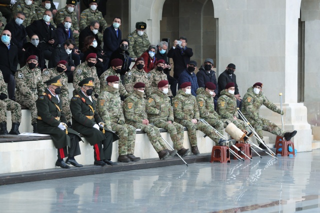 Aliyev konuşmasında, "Ermenistan'ı savaş alanında yendik. 44 günde Ermenistan ordusu yenildi. Azerbaycan gücünü gösterdi. Biz güç topluyoruz dedik ve gücü topladık. Biz haklıydık. Hak adalet bizim tarafımızdaydı. 10 Kasım'da Ermenistan Sözleşmeyi imzalamayı mecbur oldu. bir kurşun atılmadan Kelbecer ve Laçın Ağdam alındı. Bu bizim hem savaş alanında hem de siyasette kazandığımızı gösterir" ifadelerini kullandı.