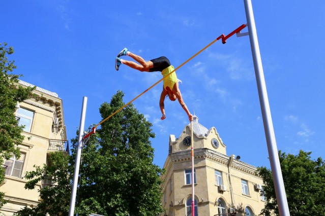 Azerbaycan'ın başkenti Bakü'de, "Street Athletics Baku 2015" sokak atletizmi, sırıkla atlama müsabakaları düzenlendi.