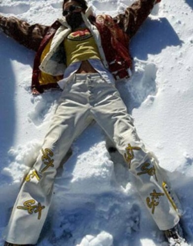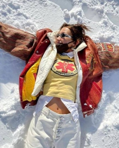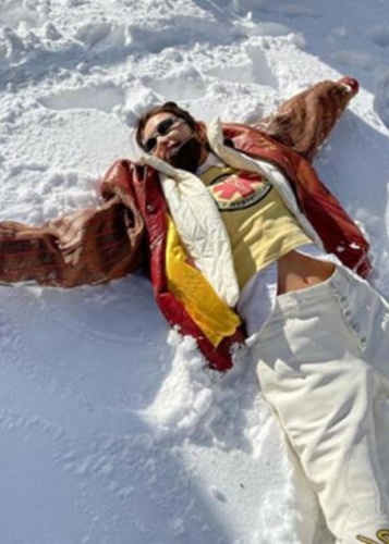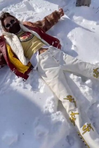 Yerde yuvarlanan Hadid, o anları da Instagram hesabından "Kar meleği" notuyla yayınladı.