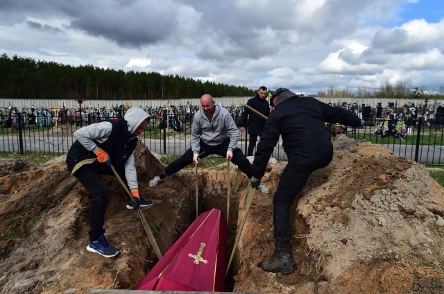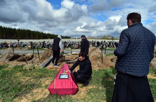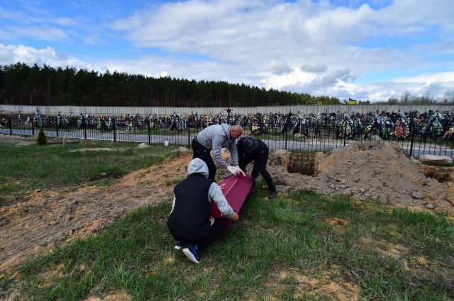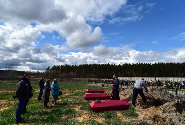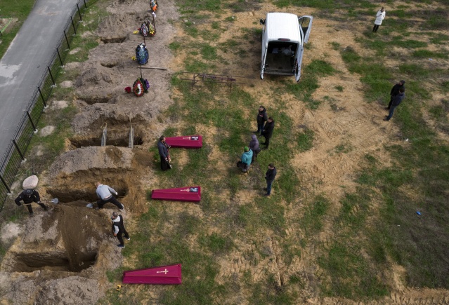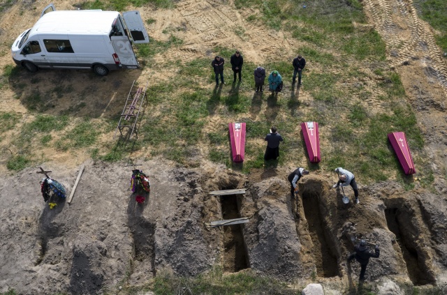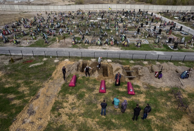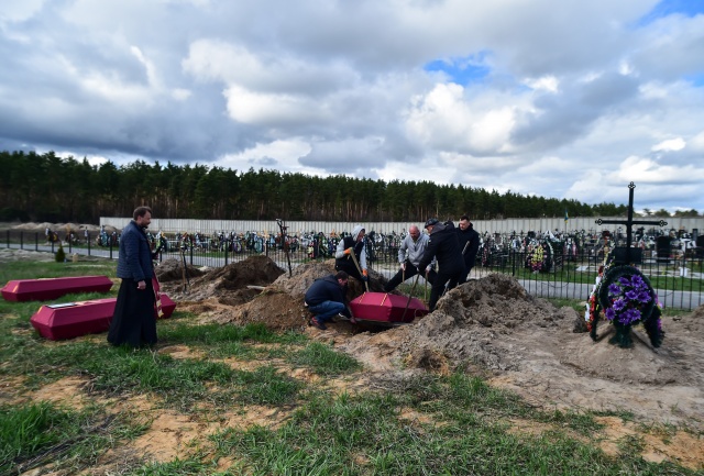 Ukrayna'nın Bucha kentinde Rusya'nın saldırılarında hayatını kaybeden siviller, kimlik tespitinin ardından düzenlenen törenle toprağa verildi.