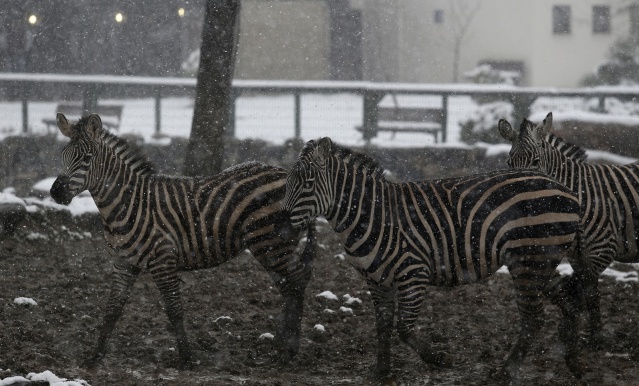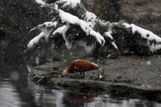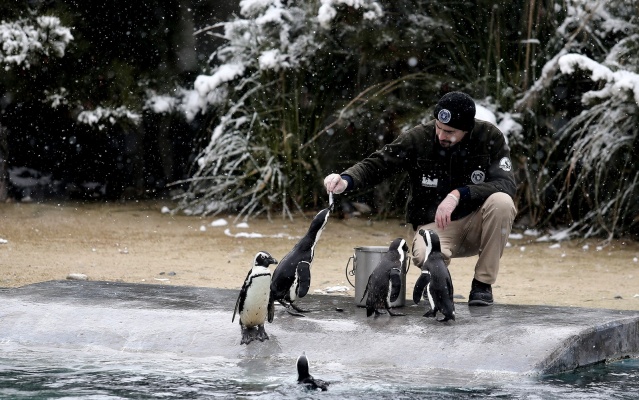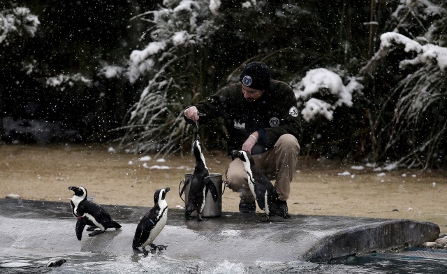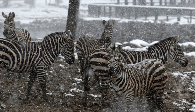 Bursa Hayvanat Bahçesi'nde soğuğu seven hayvanlar mart ayında yağan karın keyfini çıkarıyor. Kar yağışına aldırış etmeden görevliler tarafından beslenen penguenler, havuzlarında kar yağışının mutluluğunu yaşıyor.