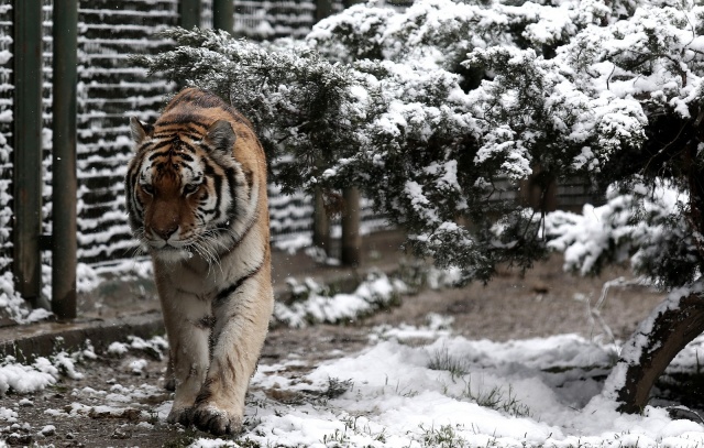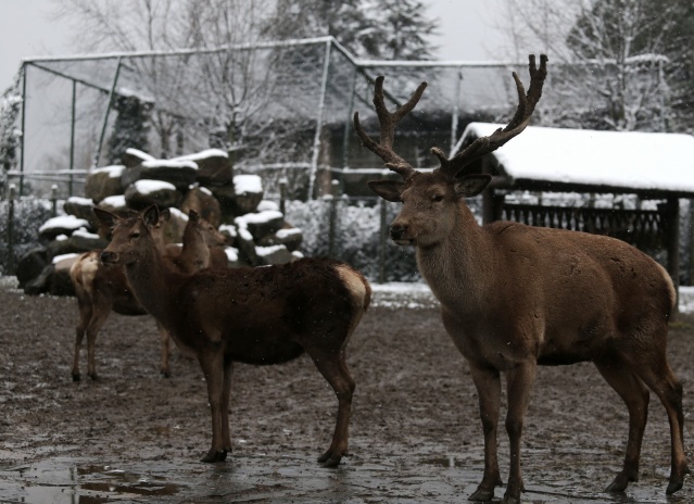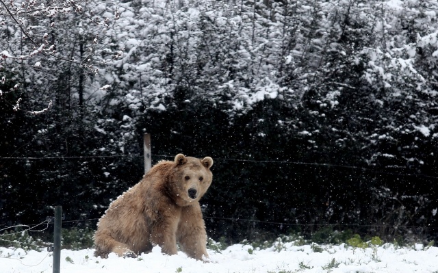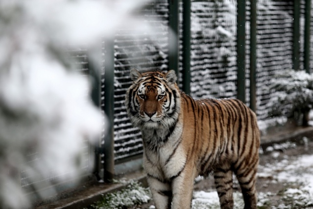 Bursa Büyükşehir Belediyesi Hayvanat Bahçesi'nde kış mevsimini seven hayvanlar; mart ayında yağan karın keyfini çıkardı.