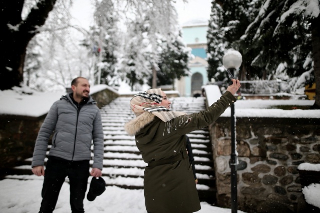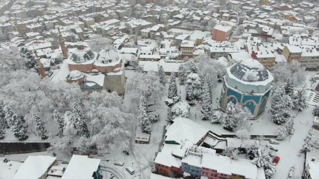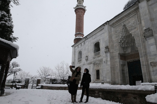 Bursa’da dün akşam saatlerinde başlayan kar yağışı etkisini sürdürüyor. Şehrin tarihi yerleri Emirsultan Cami ve Türbesi, Yeşil Cami ve Türbesi, tarihi hanlar bölgesi, saat kulesi, tarihi surların da bembeyaz hali havadan görüntülendi. Meydanlar güvercinlere kalırken, bazı vatandaşları sokak hayvanlarını da unutmadı. Kapı önlerine çıkan çocuklar kartopu oynadı. Kısıtlamadan muaf olan yabancı turistler ise tarihi cami ve türbe ziyaretlerini kar altında gerçekleştirdi. Turistler tarihi yerlerin önünde fotoğraf çektirdi.