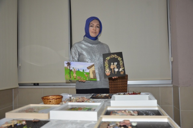 Ordu'nun Ünye ilçesinde yaşayan 38 yaşındaki ev hanımı Merve Sider, çakıl taşlarını sanat eserine dönüştürüyor.