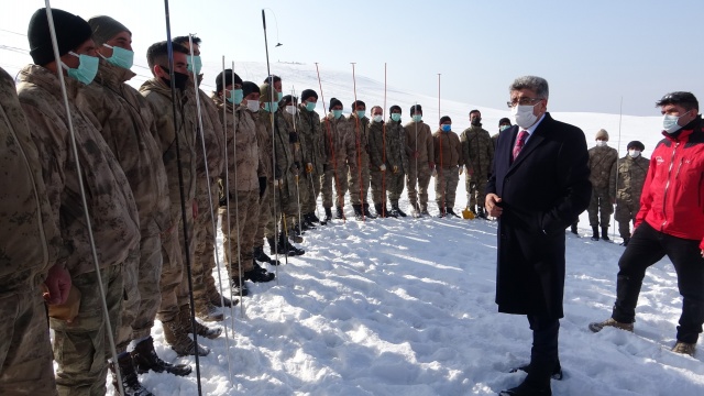 En riskli ilçemiz Bahçesaray, Çatak, Başkale ve Muradiye’dir. AFAD İl Müdürlüğümüz, bu bölgede meydana gelen çığlara müdahale edince, yolda geçen zamanı telafi etmek için bu bölgede görev yapan her ilçeden 50’şer olmak üzere toplamda 200 korucuya çığda arama, kurtarma çalışması için 5 günlük bir eğitim veriyor. Bir haftadır eğitim alan Bahçesaray ekibimiz, bugün Bahçesaray’da meydana gelen bir çığın tatbikatını gerçekleştirdi. Bu korucu arkadaşlarımız özellikle 20 ve 30 yaş aralığında seçildi. Bunlar her yıl sezon öncesi bir eğitime tabi tutulacak. Kendi normal korucu görevi dışında da hazır kıta olarak arama, kurtarma faaliyetlerinde etkin olarak görev alacaklar. AFAD ile sürekli koordine içinde olacaklar. Bu eğitimi düzenleyen AFAD İl Müdürümüz, İl Jandarma Komutanlığımız, Sakarya’dan, Erzurum’dan, Adana’dan gelen eğitmen arkadaşlarımıza teşekkür ediyorum. Bu eğitimi gönüllü alan korucu arkadaşlarımızı da tebrik ediyorum. Çığ faciası konusunda daha hızlı, daha donanımlı ve hazır halde olacağız. İnşallah olmaz ama ihtiyaç duyulması halinde de arkadaşlarımızı seri, daha hızlı ve daha bilimsel bir arama kurtarma faaliyetini icra edeceklerdir” dedi.