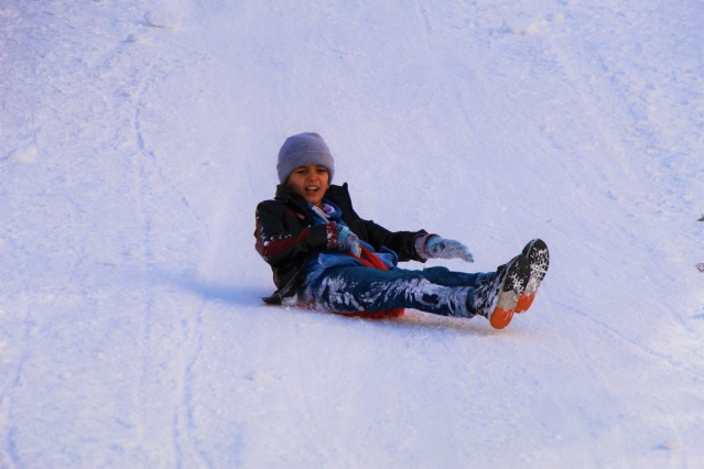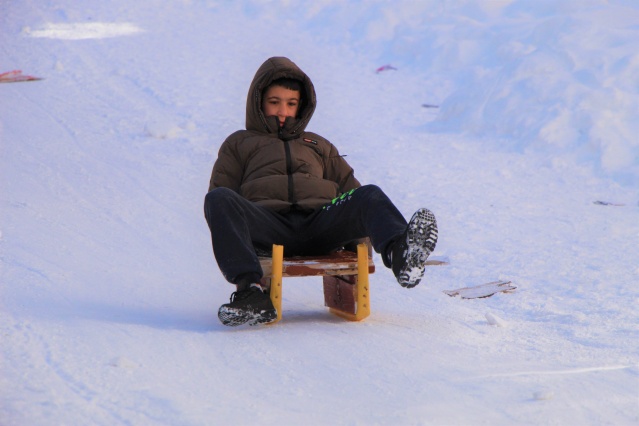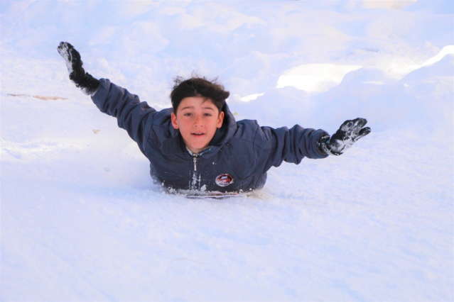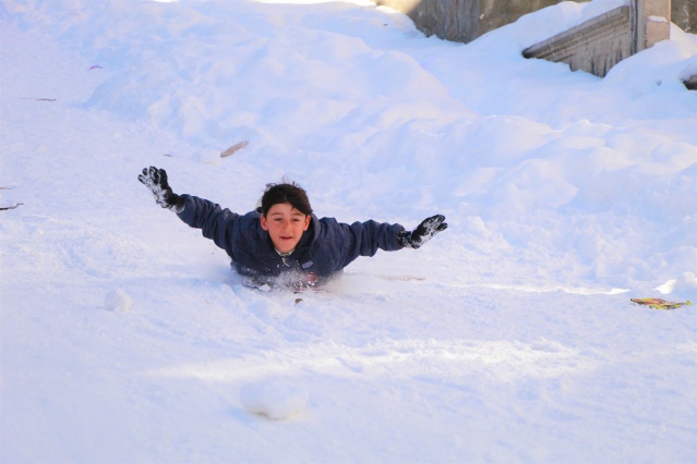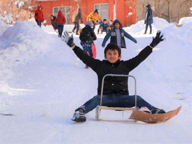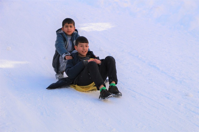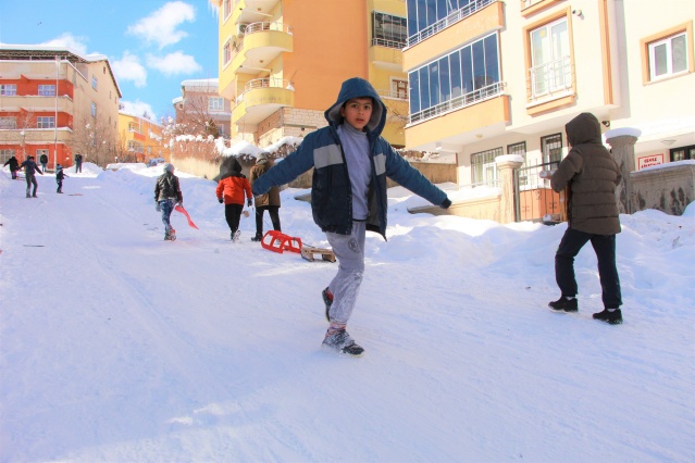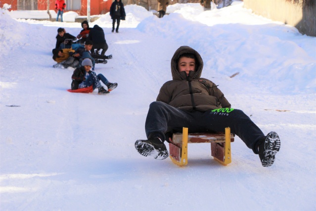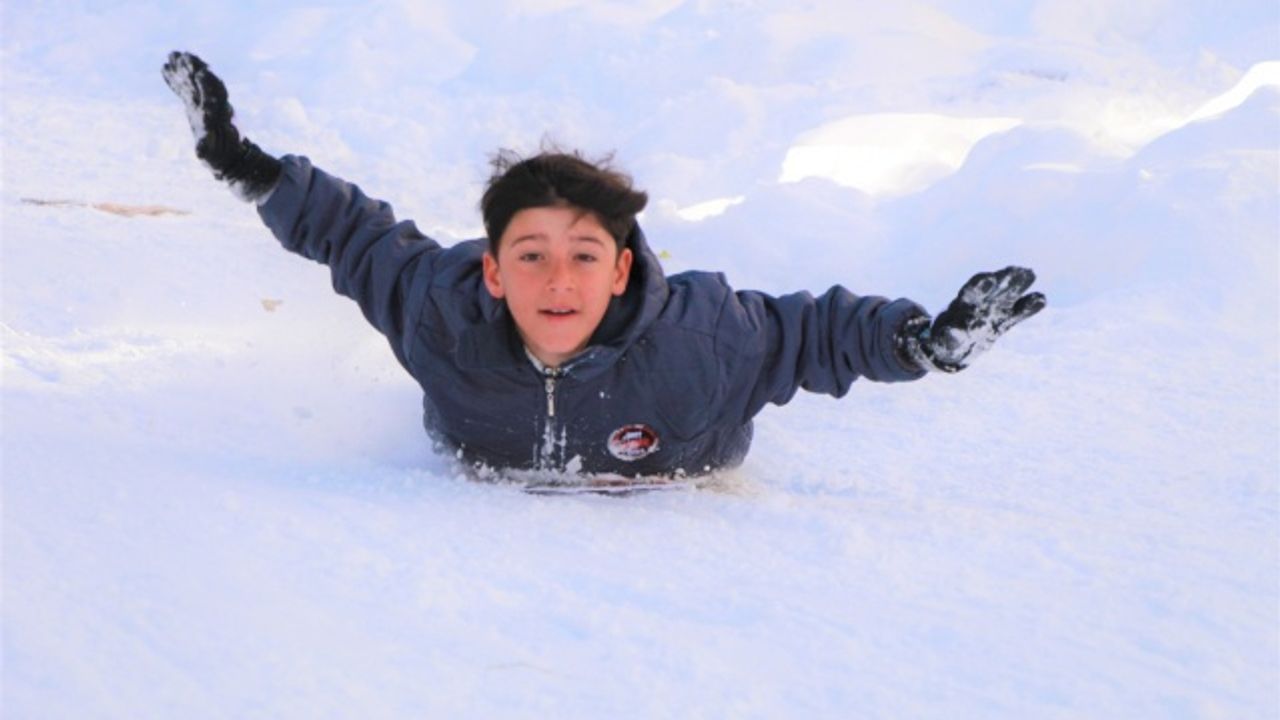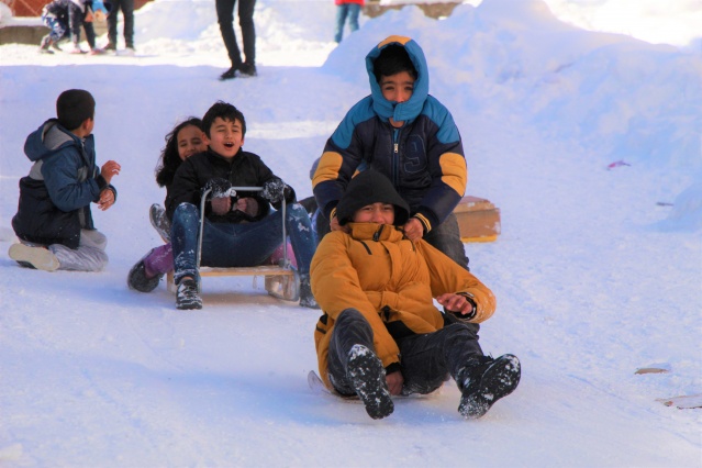 Bingöl'de 1 metreyi aşan kar nedeniyle geçici olarak trafiğe kapatılan yol, çocuklara eğlence olurken vatandaşa çile oldu.