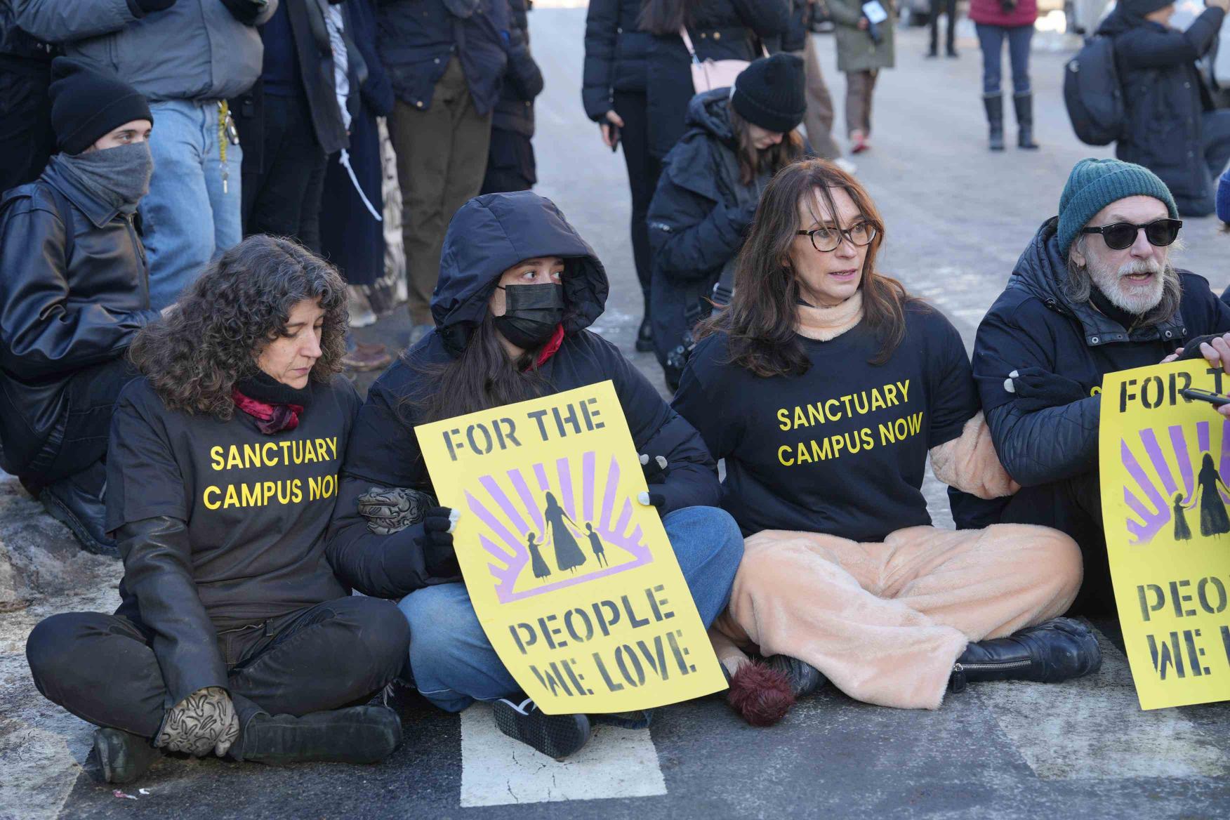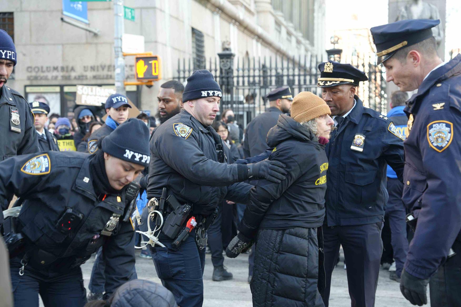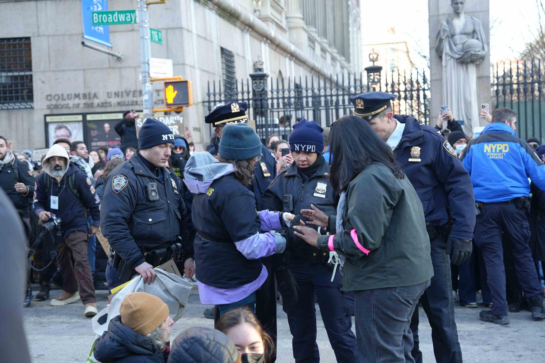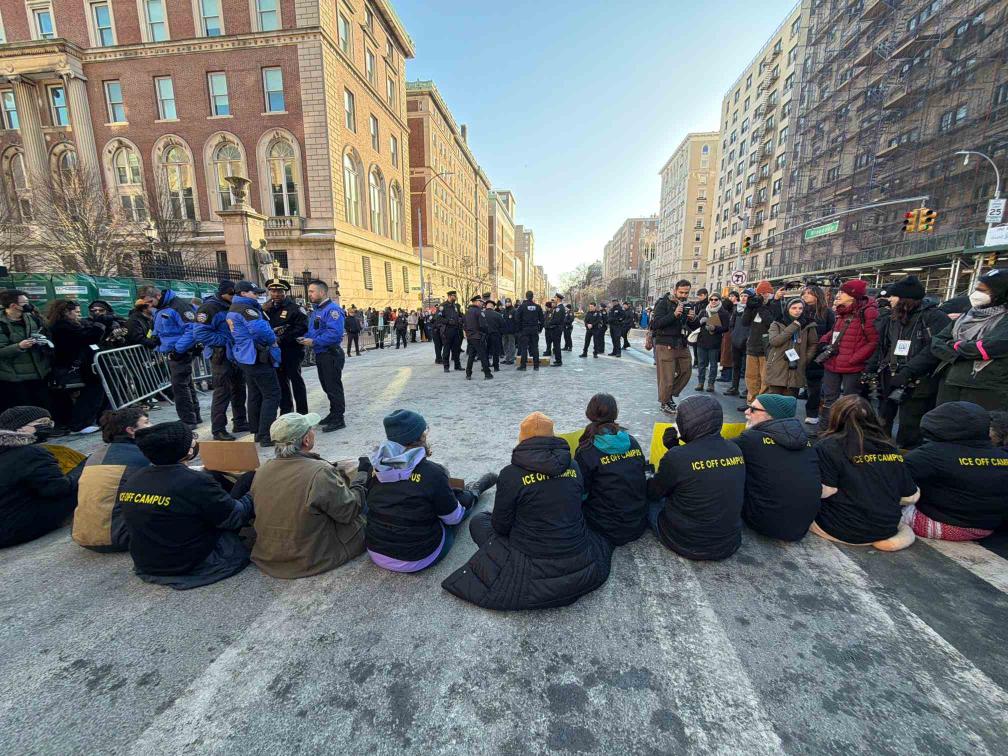 Gösteri sırasında yaklaşık 10 kişilik bir grup, üniversite önündeki yola oturarak trafiği durdurdu. NYPD ekiplerinin defalarca yaptığı uyarılara rağmen yolu açmayan protestocular polis tarafından gözaltına alındı. Müdahale sırasında çevrede geniş güvenlik önlemleri alındı.