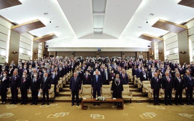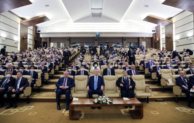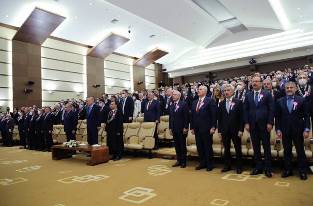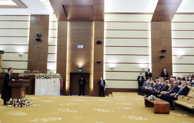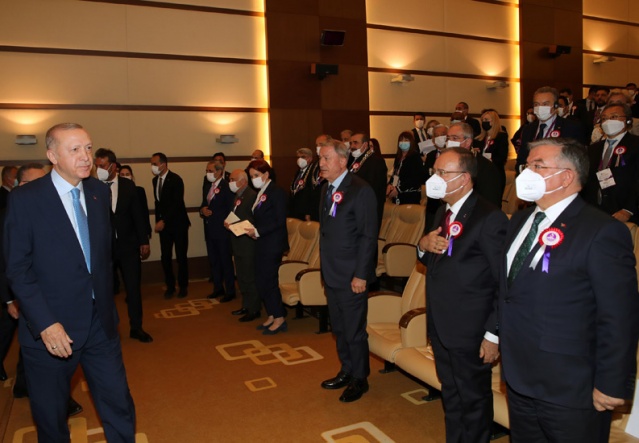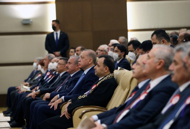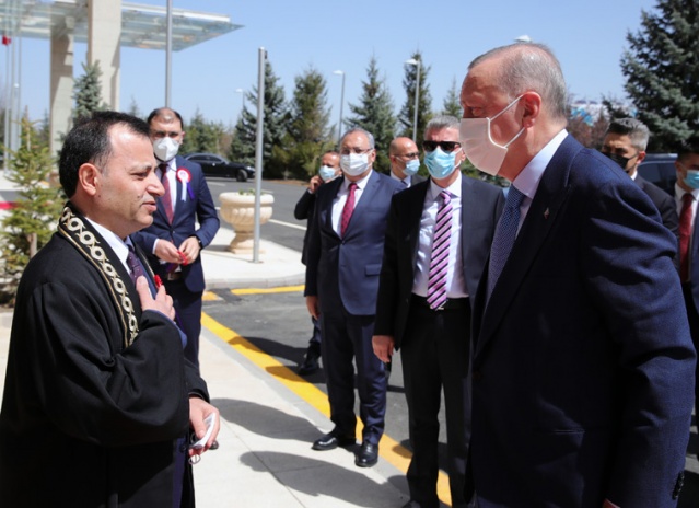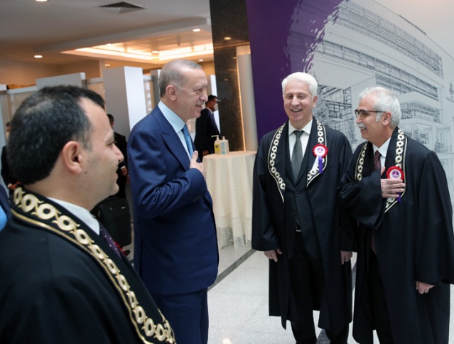 Anayasa Mahkemesi’ne gelişinde Anayasa Mahkemesi Başkanı Zühtü Arslan tarafından karşılanan Cumhurbaşkanı Erdoğan, daha sonra törenin gerçekleştirileceği Yüce Divan Salonu’na geçerek programa iştirak etti.