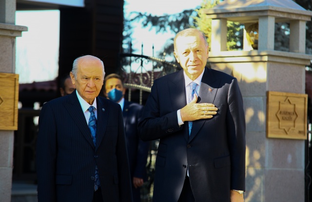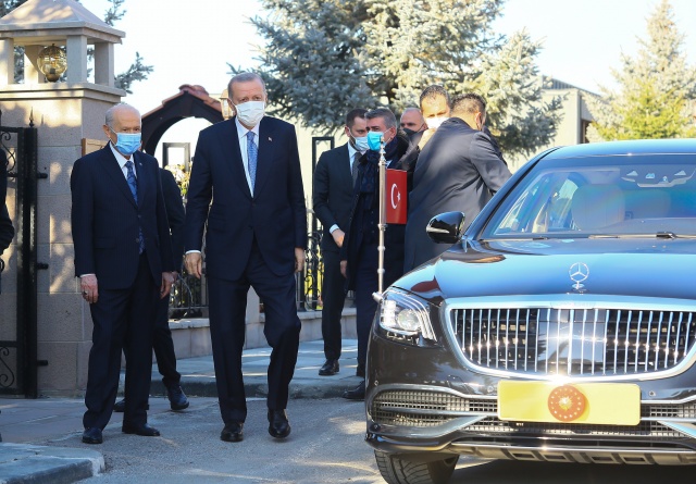 Cumhurbaşkanı Recep Tayyip Erdoğan, MHP Genel Başkanı Devlet Bahçeli ile bir araya geldi. Bahçeli'nin evinde gerçekleşen görüşme, basına kapalı olarak devam ediyor.