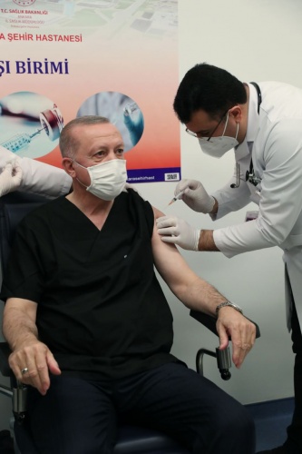 Sağlık Bakanı Fahrettin Koca ve Bilim Kurulu üyelerinin ardından Cumhurbaşkanı Recep Tayyip Erdoğan da Sinovac tarafından yeni tip koronavirüse (Kovid-19) karşı geliştirilen CoronaVac aşısını yaptırdı.
