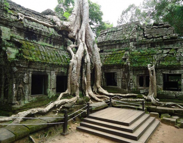 Ta Prohm Tapınağı: Kamboçya’da doğanın yuttuğu bir tapınaktır ve 13. yüzyılda inşa edilmiştir. Terk edilince dev ağaç kökleriyle sarmalanmıştır.