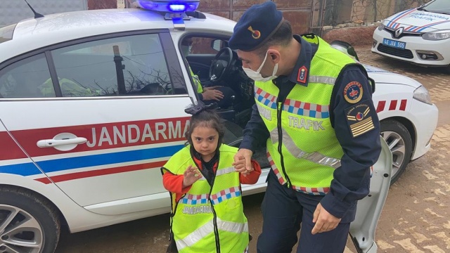 Kahramanmaraş'ta Jandarma Trafik Timleri, ziyaret ettikleri Down Sendromlu bireylere, yelek giydirerek araçları ile gezdirdi.