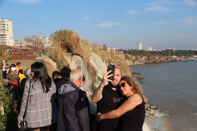 Hollanda’dan tatile gelen Demet Akpınar, kahverengide olsa Düden Şelalesi’ni çok sevdiklerini belirterek, “Memleketimizin her rengi güzel. Şelaleye bu renkte yakışmış ama mavi daha güzel olabilirdi. Ailecek geldik, çocuklarımız da çok sevdi. Şelalenin bu güzelliklerini de fotoğrafladık” dedi.