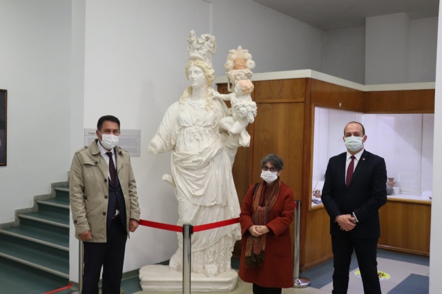 Konuralp Antik Tiyatrosu ve Konuralp Müzesi’ni gezdiğini belirten Prof. Dr. Füsun Tülek, “Kültür malzemesinin bilimsel incelenmesinin ardından kentin tarihini sağlam bir temele oturtmak gerekecek. Buradaki çalışmaları sadece tiyatro çalışmaları olarak görmüyorum. Kentin yaşam alanının da ortaya çıkarılmasını doğru buluyorum. Bilimsel tarihini başından sonuna kadar çalışmaların yapılması gerektiğini düşünüyorum. Bu yüzden de Düzce tarafından hep davet edilmişimdir ve elimizi buradan hiç çekmemişizdir” dedi. Kocaeli Üniversitesi Arkeoloji Ana Bilim Dalı Başkanı olan Prof. Dr. Füsun Tülek; Bizans çalışmaları üzerine yüksek lisans, Amerika Birleşik Devletleri’nde Mimarlık Tarihi, Roma Arkeolojisi, Sanat Tarihi, Klasik Arkeoloji ve Sanat Tarihi alanlarında doktora yaptı. Birçok bilimsel dergide makalesi yayınlanan ve arkeoloji alanında kitapları bulunan Tülek, Düzce- Konuralp Prusias Ad Hypium Aynalı Köy Mozaikli alan kazısında bilimsel danışman olarak görev aldı.