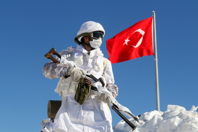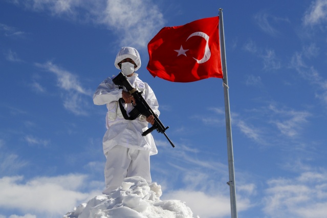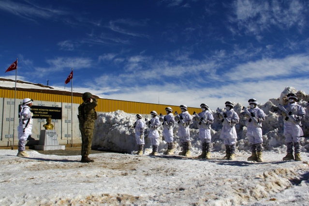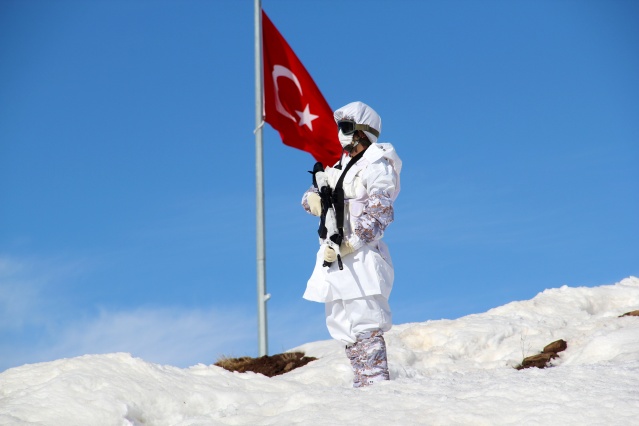 Irak'ın sıfır noktasındaki 2 bin 200 rakımlı üs bölgesinde ‘hudut namustur' bilinciyle görev alan Mehmetçik, aynı zamanda zorlu doğa şartlarıyla da mücadele ediyor. Dağlık arazi yapısının yanı sıra kış mevsiminin zorluklarına da göğüs geren hudut kartalları, kar kalınlığının yer yer 2 metreyi bulduğu bölgelerde amansız takibini sürdürüyor.