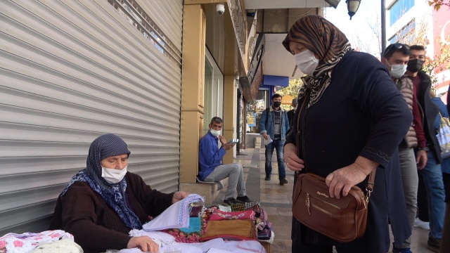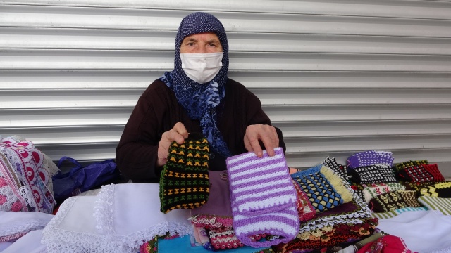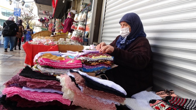 Denizli’de yaşayan 75 yaşındaki Emine Özel, ilerleyen yaşına rağmen el emeği göz nuru ürünlerini sokak ve caddelerde açtığı ufak tezgahında satarak evinin geçimini sağlıyor.