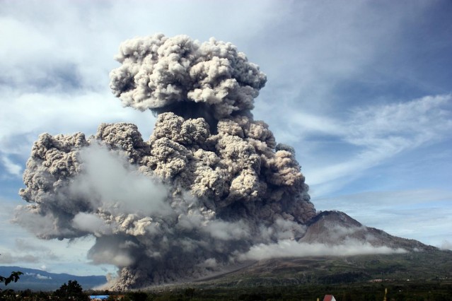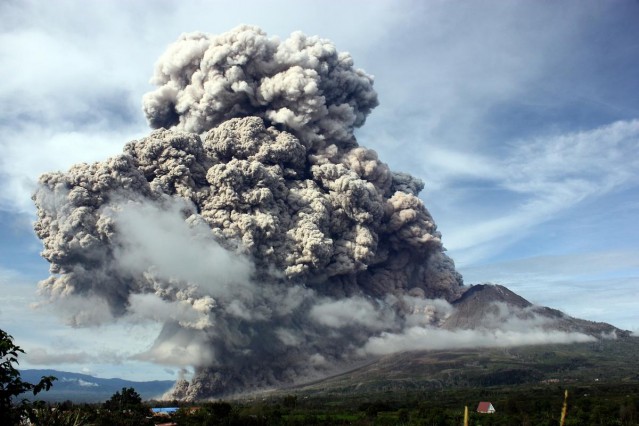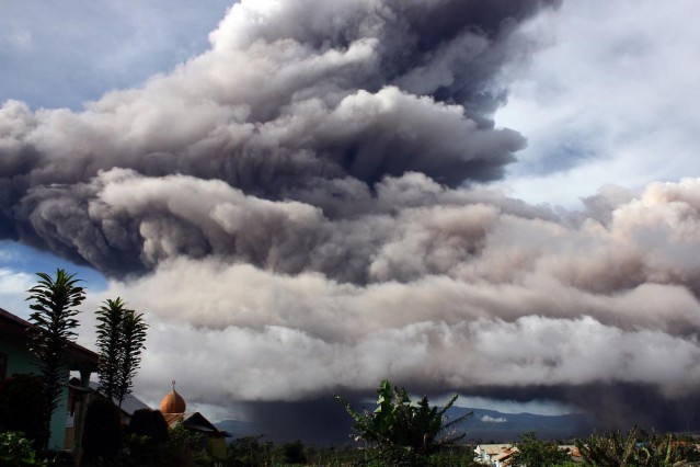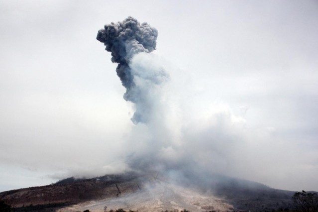 Endonezya'nın batısındaki Sinabung Yanardağı, havaya gaz, kül ve lav püskürtmeye devam ediyor.