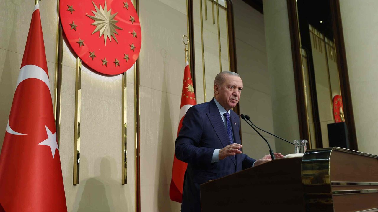 Türkiye’nin yeniden şekillenen küresel sistemde daha güçlü bir konuma geldiğini dile getiren Erdoğan, “Türkiye bugün yakın tarihinde hiç olmadığı kadar güçlü, müteakkız ve muktedirdir. Bölgesinin kutup başı olarak yerini pekiştiren bir Türkiye’yi süratle inşa ediyoruz” dedi.