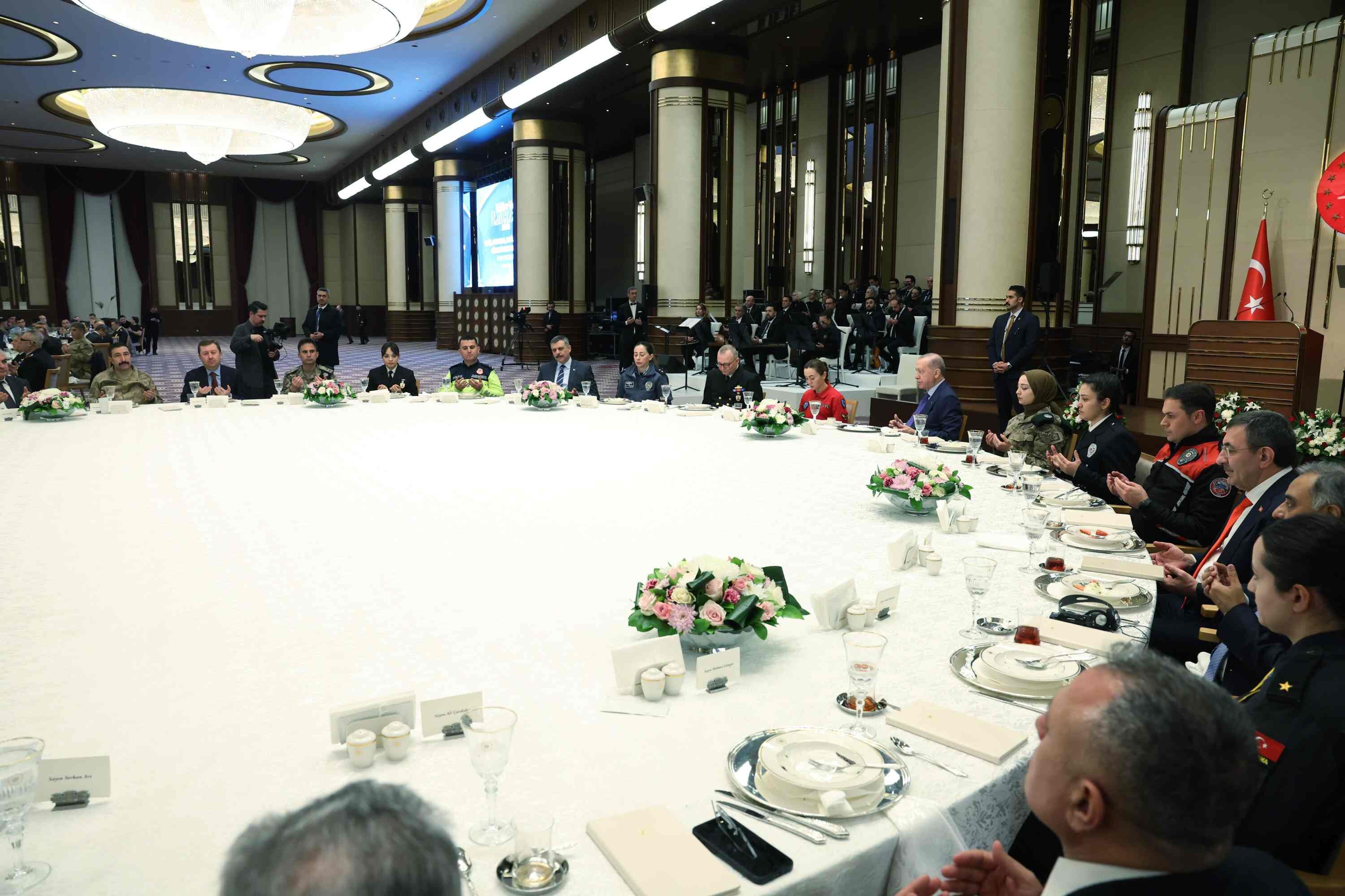 Cumhurbaşkanı Recep Tayyip Erdoğan, Cumhurbaşkanlığı Külliyesi’nde polis, jandarma, Sahil Güvenlik personeli ve güvenlik korucularıyla düzenlenen iftar programında önemli açıklamalarda bulundu.
