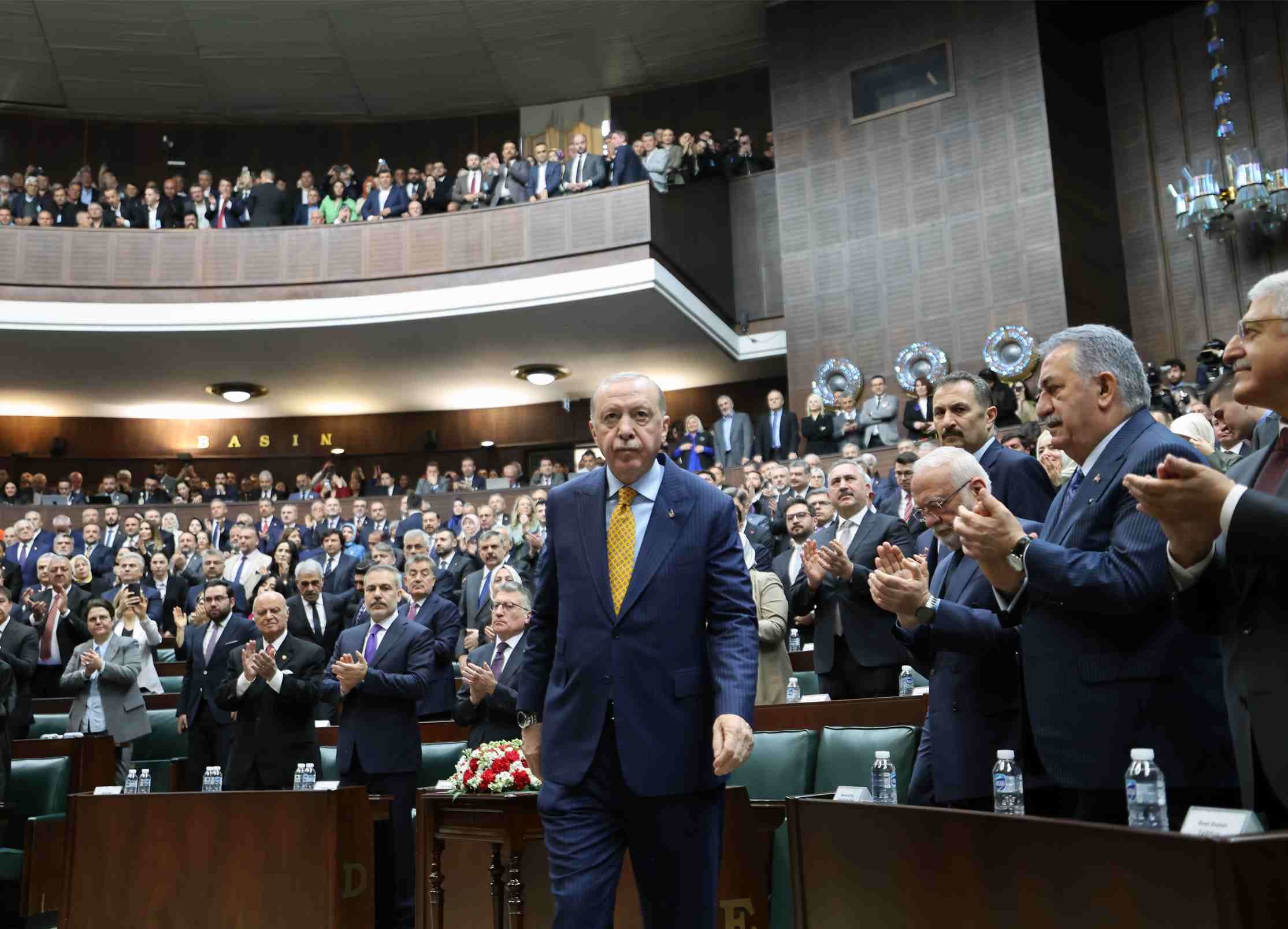Türkiye gibi İspanya’nın da İsrail karşısında dik duruş sergilediğini ifade eden Erdoğan, "Ne yaparlarsa yapsınlar, cesur yürekleri susturamayacak, hakkı ve hakikati savunan kalplere zincir vuramayacaklar. Buradan, gazi Meclisimizin çatısı altından Gazze kasabı Netenyahu'nun tehditleri karşısında dik bir duruş sergileyen İspanya Başbakanı değerli dostum Sanchez'i can gönülden tebrik ediyorum. Dost İspanya halkını aynı şekilde ülkem ve milliyetim adına kutluyorum. Şunu herkes bilsin ki biz soykırım şebekesinin köpürttüğü nefret diline, husumet diline, gerilim ve kavga diline teslim olmayacağız. Vakarla, onurla, tarihimizden tevarüs ettiğimiz asalet ve cesaretle en zor zamanlarda doğruları konuşmaya devam edeceğiz. Zalime zalim, hayduda haydut, katile katil demeye devam edeceğiz. Gazzeli masum yavruların haykıran sesi olmaya devam edeceğiz. Evlat acısıyla ciğeri yanan Filistinli annelerin feryadına kulak vermeye devam edeceğiz. Batı Şeria’da toprakları işgal edilen kardeşlerimizin hakkını savunmaya devam edeceğiz. Lübnan'da yataklarında uyurken katledilen yavruların davasının takipçisi olmaya devam edeceğiz. Gizlenmek istenen, tehdit ve zorbalıkla üstü örtülmek istenen hakikatleri birilerinin yüzlerine çarpmaya devam edeceğiz. Coğrafyamızdaki mevcudiyetlerini birilerinin yüz sene önce yaptığı ihsana borçlu olanların aksine biz bu topraklardaki bin yıllık tecrübemizin ışığında sorumluluk duygusuyla hareket etmeye devam edeceğiz" diye konuştu.