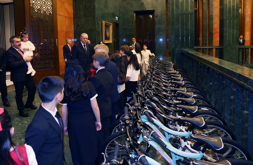 Cumhurbaşkanı Recep Tayyip Erdoğan, 23 Nisan Ulusal Egemenlik ve Çocuk Bayramı dolayısıyla Millî Eğitim Bakanı Yusuf Tekin ve beraberindeki çocukları Cumhurbaşkanlığı Külliyesinde kabul etti.