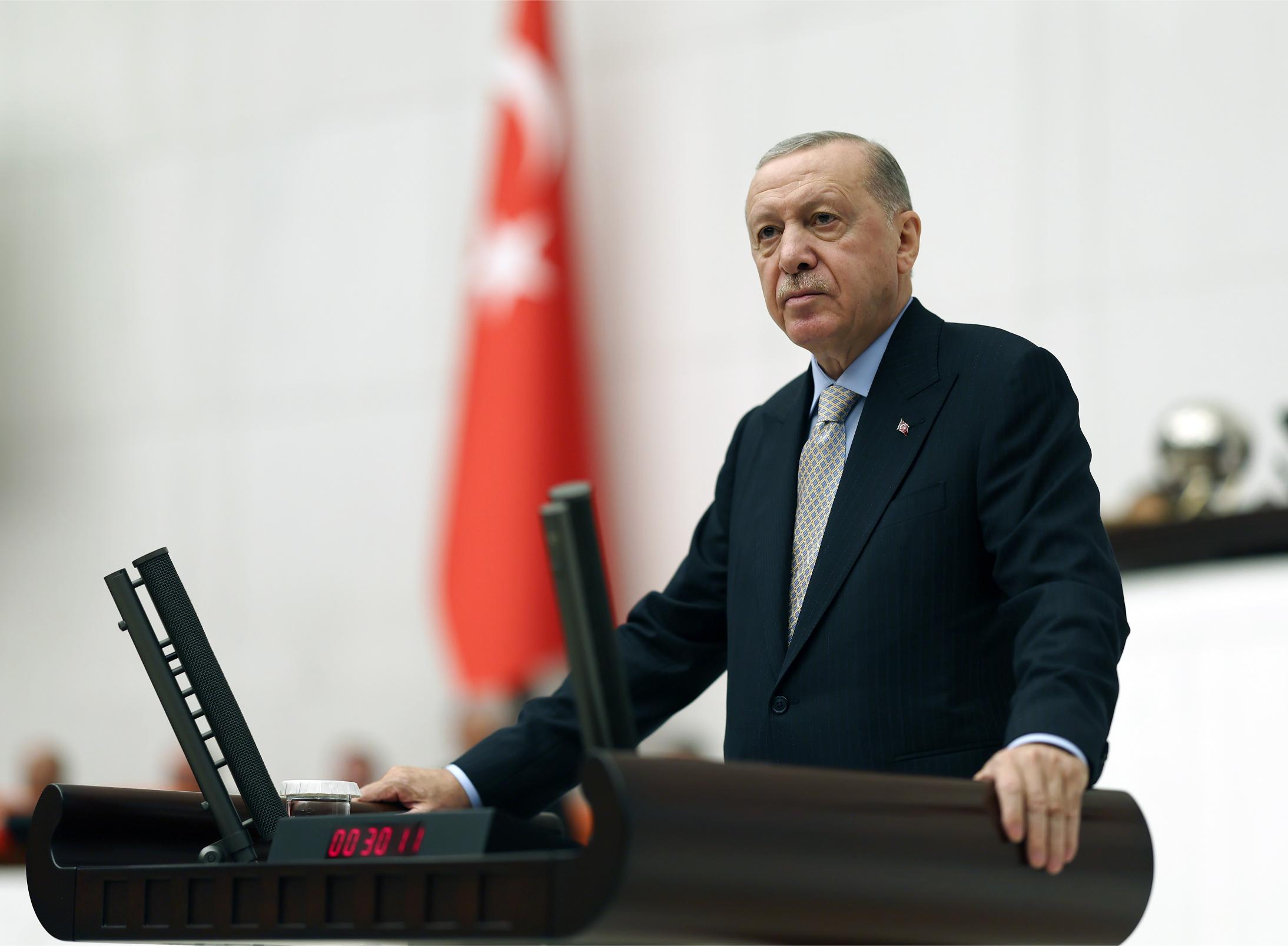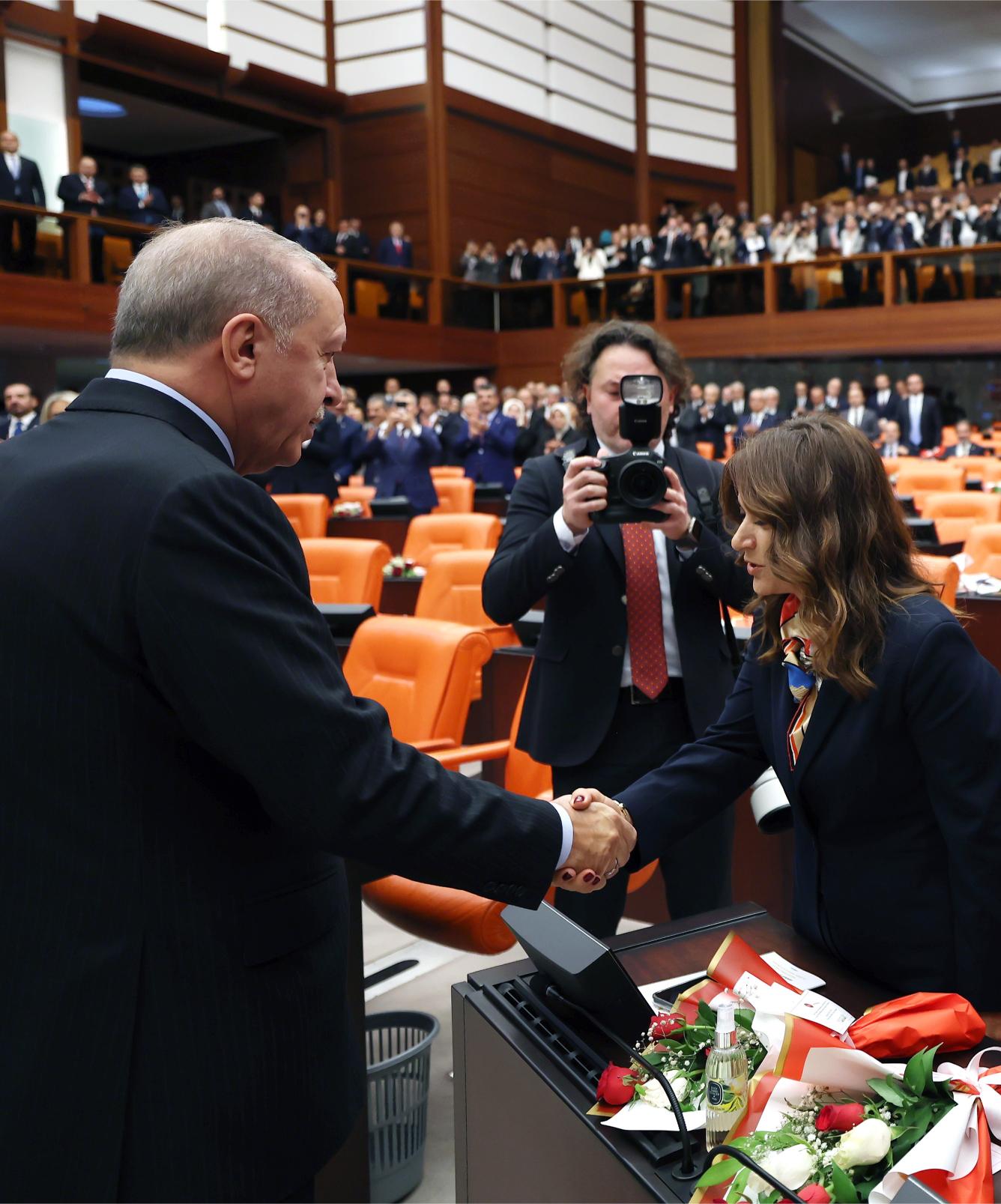 Milli egemenliğin temsil ve tecelli makamı olan Türkiye Büyük Millet Meclisinin 4'üncü ve sonraki yasama yıllarında da aynı ruh, aynı kararlılıkla çalışacağına inandığını ifade eden Erdoğan, "Her zaman söylediğimiz gibi aslolan, milletin ve memleketin esenliğidir, huzurudur. Bu aziz millete hayırlı hizmetler ve eserler kazandırabilmektir. Aslolan, vatandaşı olmaktan şeref duyduğumuz Türkiye Cumhuriyeti'ni ilelebet mesut, muvaffak ve muzaffer kılabilmektir. Aslolan, Türkiye Yüzyılı hedeflerimizi kuvveden fiile çıkarmak için canla başla çalışmak, gecesini gündüzüne katabilmektir. Bu mücadele, iktidar ve ittifak olarak sadece bizim görevimiz değildir. Şu anda yüce Meclis'in Genel Kurul salonunda milletimizin tensipleriyle bulunan her bir milletvekilimizin de asli vazifesidir" şeklinde konuştu.