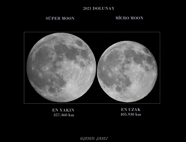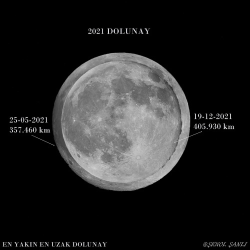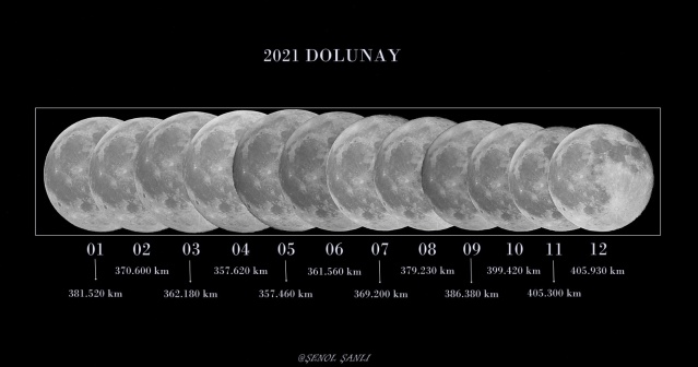 Bunları tek bir karede bir araya getirdim. 2021 yılının Mayıs ayında Ay, Dünyaya en yakın mesafe olan 357 bin kilometreye kadar yaklaştı. Aralık ayında ise 405 bin kilometreye kadar uzaklaştı. Gezegenleri de gözlemliyorum. Eğer Güneş battıktan sonra batı yönüne bakarsanız Venüs, Satürn ve Jüpiter gezegenini çok parlak olarak görebilirsiniz. Biz bunları keyifle gözlemliyoruz" dedi.