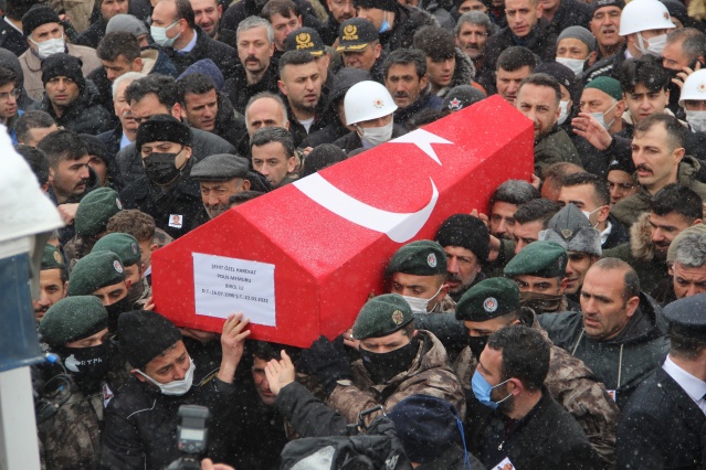 Bingöl Özel Harekat Şube Müdürlüğü’nde dün mühimmat sevki esnasında meydana gelen patlamada şehit olan Özel Harekat Polisi Birol İli memleketi Erzurum’da son yolculuğuna uğurlandı. Cenazede şehit İli’nin eşi Merve İli’nin sözleri yürekleri dağladı.