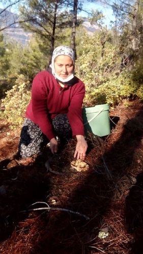 Asiye Ongun, “Çam ağaçlarının altlarında daha çok olur. Birde meşe ağacının içinde yine pürçük altında. Günde 30 kilo, bazen 10, 15 kilo kasalarca topladığımız olur. Bu dönemde bir yere çıkamadığımız için korona virüsten, bizim için ek gelir olmuş oldu. Korona virüs bir yandan iyi oldu eve kapanacağımıza dağlara gidiyoruz” dedi.