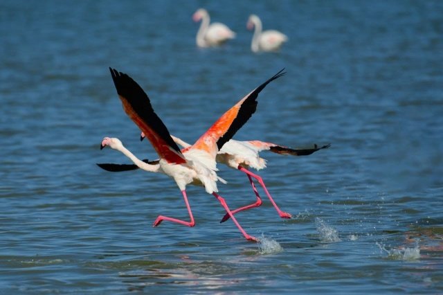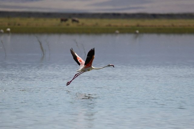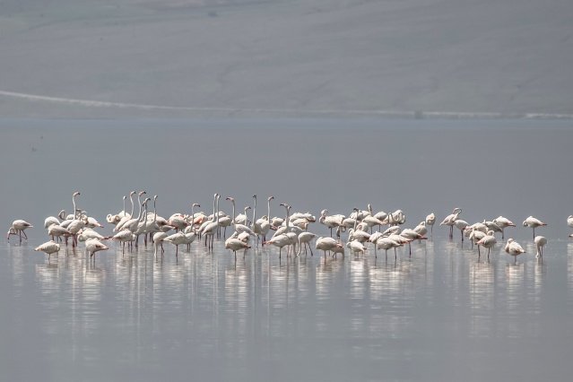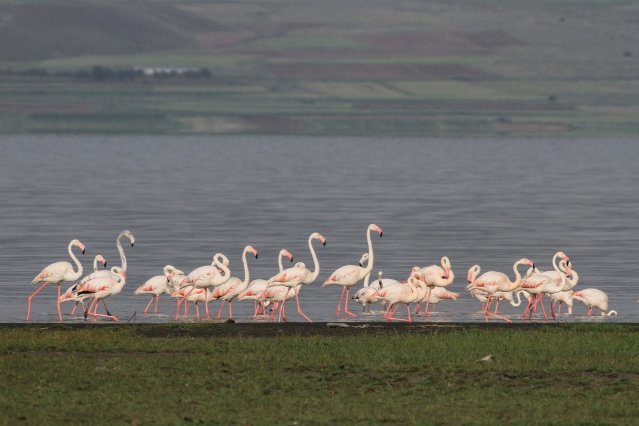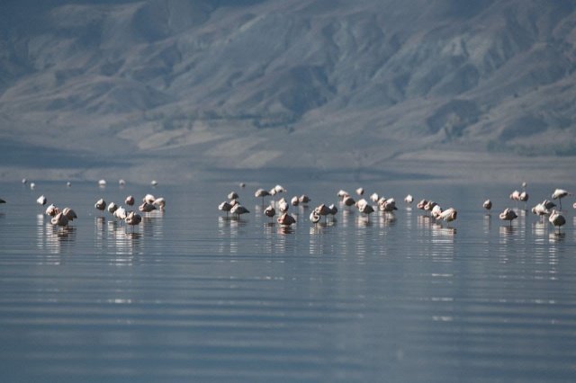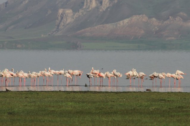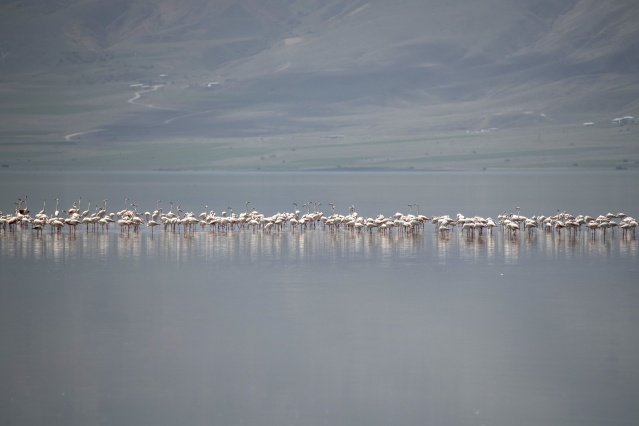 İran’ın Urmiye Gölü ile Afrika arasında göç ederek Van’a gelen flamingolar, Afrika ile İran arasında yaptıkları göç sırasında geçiş güzergahında bulunan Van Gölü Havzası’ndaki başta Erçek Gölü olmak üzere 12 sulak alanda yaklaşık 5 ay konaklıyor. Van Gölü ve çevresindeki sulak alanlarda meraklılarına görsel şölen de sunan flamingoların bu yılki ilk grubu Erçek Gölü kıyılarına geldi.