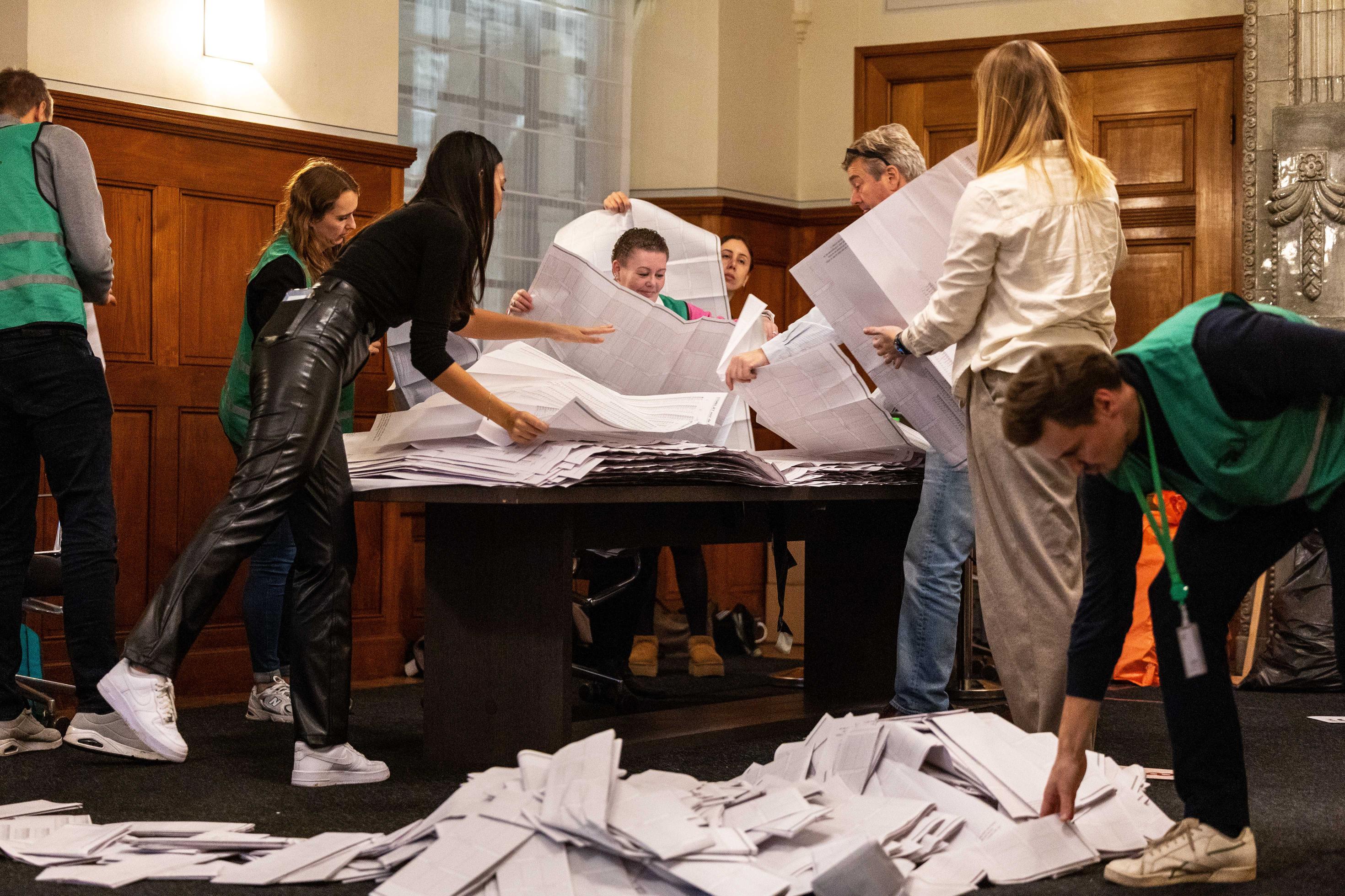 Hollanda’da dün düzenlenen erken genel seçimin ardından başlayan oy sayım işleminde sona gelindi. Son anketlere göre "Hollanda'nın Trump'ı" olarak nitelendirilen aşırı sağcı Geert Wilders liderliğindeki Özgürlük Partisi (PVV), 150 sandalyenin 37'sini kazandı. Frans Timmermans liderliğindeki Yeşil İşçi İttifak 25 sandalye ile ikinci sırada, Dilan Yeşilgöz-Zegerius liderliğindeki Özgürlük ve Demokrasi için Halk Partisi (VVD) 24 sandalye ile üçüncü sırada ve Pieter Omtzigt liderliğindeki Yeni Sosyal Sözleşme 20 sandalye ile dördüncü sırada yer aldı.