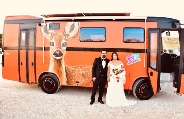 Antalya'da yaşayan Yağmur ve Mert Kaybaki çifti, hurda halde aldıkları otobüsü lüks bir karavana çevirdi. Nişanlıyken aldıkları otobüsü düğünlerine kadar en ince ayrıntısına kadar düşünüp yaptıran çift, karavanlarını düğün arabası olarak da kullandı.