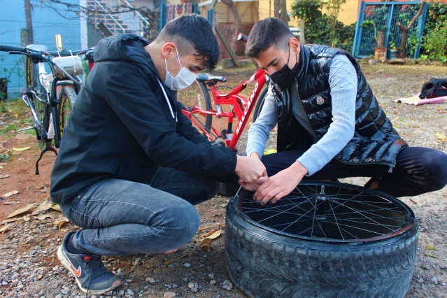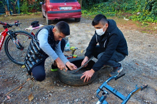 Kocaeli’nin Gebze ilçesinde yaşayan 16 yaşındaki 2 arkadaş, pandemi döneminde can sıkıntısıyla hayata geçirdikleri ve hurda demirleri kullanarak yaptıkları araba lastikli bisiklet, vatandaşlardan yoğun talep gelmesi üzerine ekmek kapıları oldu.