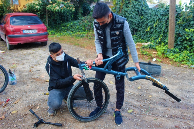 Kocaeli’nin Gebze ilçesinde yaşayan 16 yaşındaki Mücahit Gırgıç ve Efe Demiral isimli iki lise öğrencisi arkadaş, pandemi döneminde can sıkıntılarını giderebilmek için, ellerindeki hurdaları kullanarak bir ürün yapmak istedi. Bunun üzerine kullanılmayan demirleri kaynak yaparak birbirine bağlayan 2 arkadaş, bunlarla bir bisiklet gövdesi elde etti.