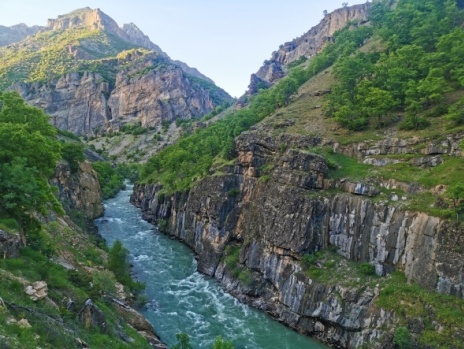 Dağların arasında süzülerek eğimin az olduğu bölgelerde menderes oluşturan vadiden geçen Munzur çayı, Amerika'da bulunan Colorado nehrini andırsa da yeşil örtüsüyle farkını gözler önüne seriyor.
