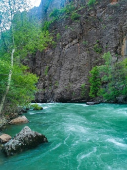 Huzur veren vadiden geçen Munzur çayı, Amerika'da bulunan Colorado nehrini andırsa da yeşil örtüsüyle farkını gözler önüne seriyor.