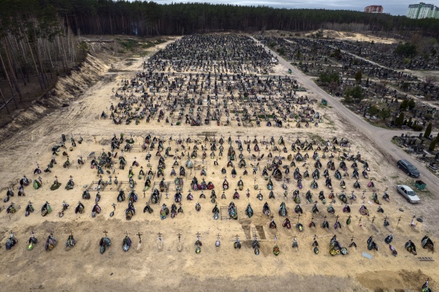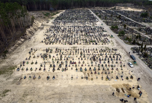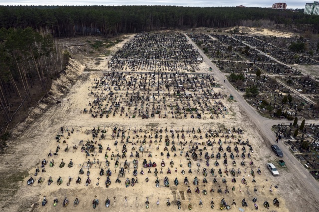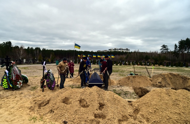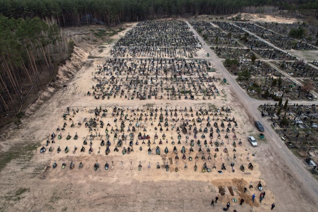 Rusya’nın Ukrayna’daki saldırıları sürerken, Rus ordusunun çekildiği Ukrayna’nın Irpin ve Bucha kentlerinde hayatlarını kaybeden sivillerin defin işlemleri devam ediyor. Irpin’de sivillerin defnedilme anlarının görüntülenmesinin ardından ortaya sarsıcı görüntüler çıktı. Eski mezarların yanına kazılan çok sayıda yeni mezar alanı, savaşın şiddetini bir kez daha gözler önüne serdi.